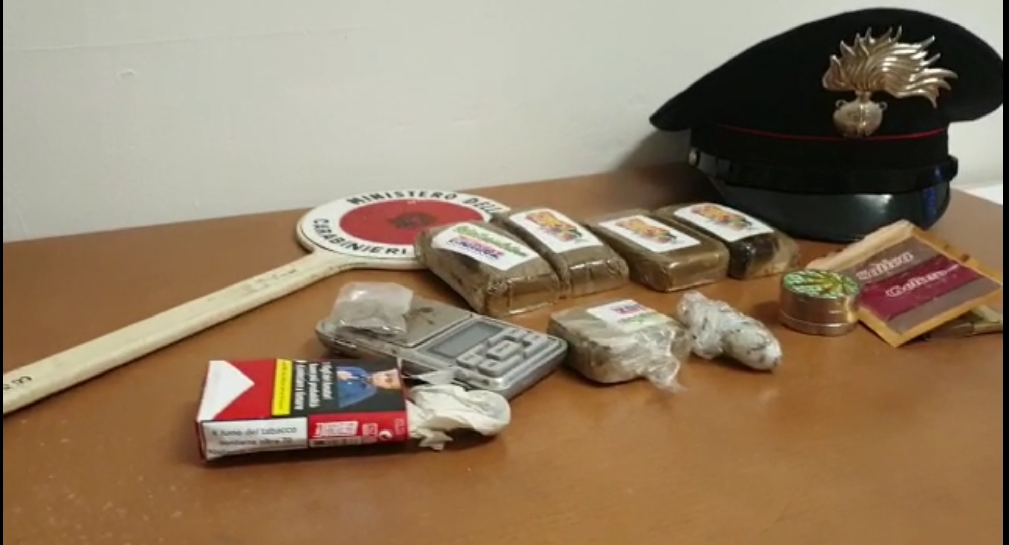 I Carabinieri, però, insospettiti dall’atteggiamento del gruppo, hanno approfondito il controllo. Il mozzicone di uno spinello a terra, dal lato del passeggero, ha fortificato il sospetto e, procedendo a una perquisizione di iniziativa, i militari hanno rinvenuto, nascosti sotto il sedile cinque panetti di hashish per un peso complessivo di poco meno di mezzo chilo per un valore sul mercato di quasi 3mila euro. Le perquisizioni, personali e domiciliari, hanno permesso di rinvenire, a casa di due dei ragazzi, piccole quantità di ulteriore sostanza, bilancini e materiale utile al confezionamento.