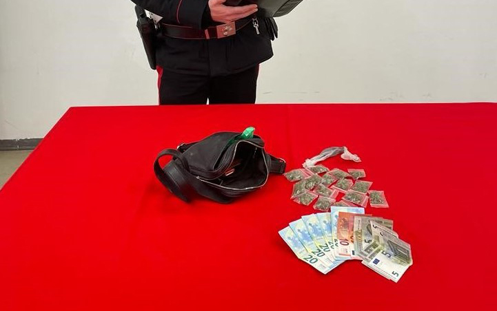 I Carabinieri nel frattempo hanno recuperato un borsello che l’uomo aveva gettato nei cespugli nel tentativo di disfarsene, che una volta recuperato è risultato contenere 15 bustine di marjuana, per un peso di circa 22 grammi, confezionate a “monodosi” pronte per essere cedute a terzi.