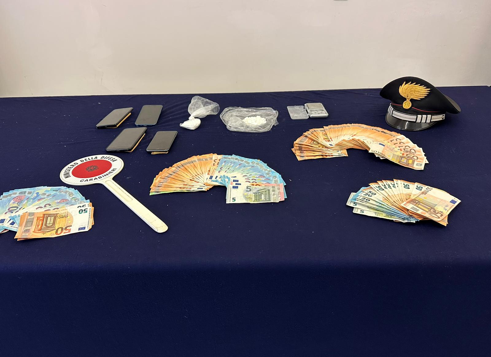 Sottoposto a perquisizione, nelle tasche della giacca gli sono stati trovati due involucri in cellophane trasparente, contenenti poco più di 50 grammi di cocaina e nel portafogli la somma contante di oltre 1.700 euro, tutte in banconote da piccolo taglio. I Carabinieri, hanno quindi perquisito anche il garage, dove è stato visto entrare, rinvenendo anche un bilancino di precisone e materiale utilizzato per il confezionamento delle dosi, quali nastro adesivo e ritagli in cellophane.