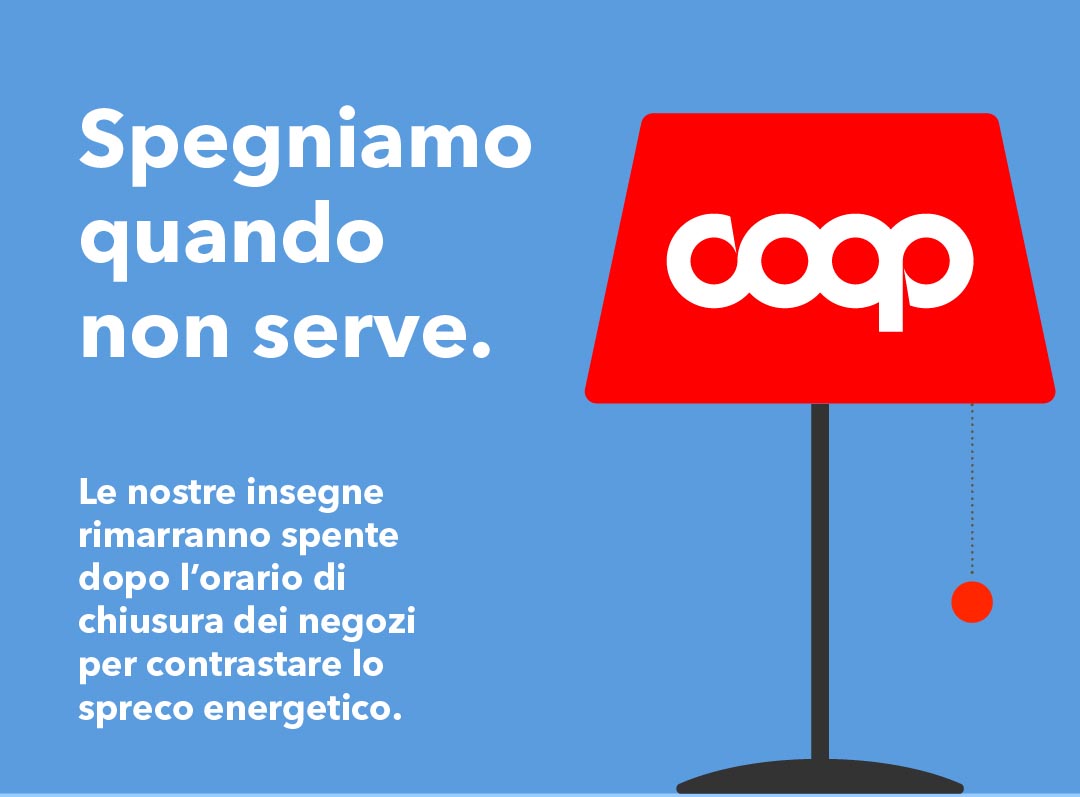 “Spegniamo quando non serve” è la scelta di Coop Alleanza 3.0, coerente con l’appello del Governo italiano a utilizzare l’energia con criterio in questa difficile e delicata situazione causata dal conflitto, in cui è più visibile il consumo superfluo di energia della nostra società.