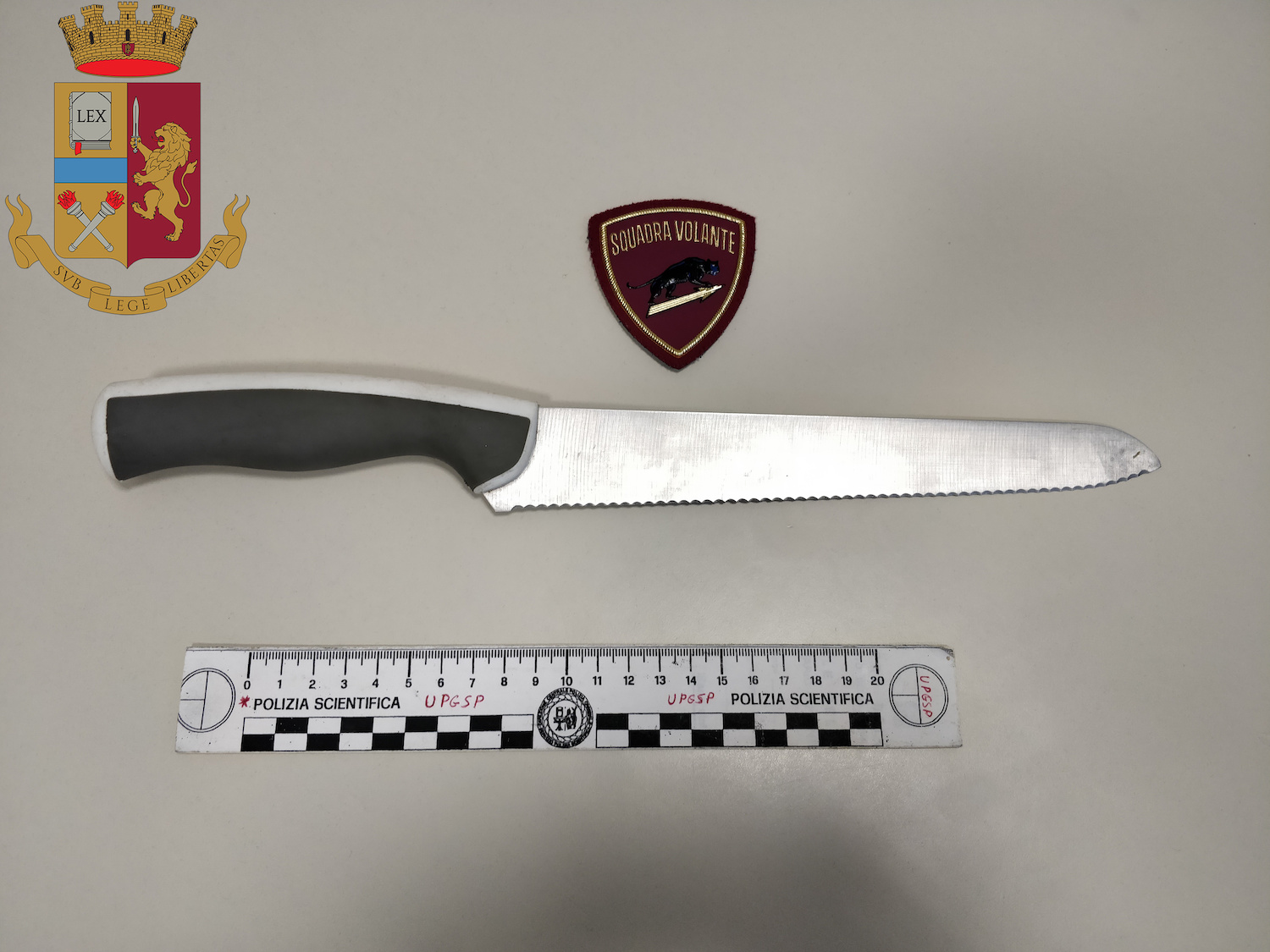 A questo punto l’aggressore, un somalo classe 98’ con svariati pregiudizi di Polizia, diventava sempre più minaccioso e, dalla tracolla che aveva indosso, estraeva un grosso coltello a lama seghettata di circa 30 – 35 centimetri, con impugnatura bianca e grigia.