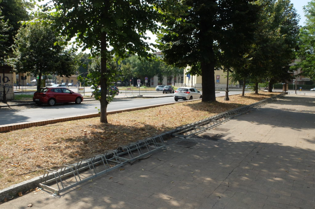 Di queste, 12 rastrelliere sono state posizione all’angolo fra Viale Partigiani d’Italia e Viale Pier Maria Rossi, altre 100, tutte ancorate a terra, sono state disposte su Viale San Michele.