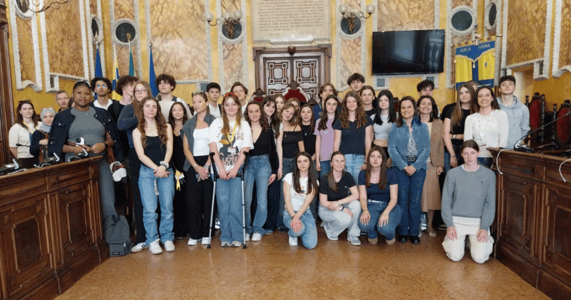 Studentesse e studenti francesi in municipio. Sono stati accolti, questa mattina, nella sala del Consiglio Comunale, dall’Assessora alla Politiche Scolastiche Caterina Bonetti.