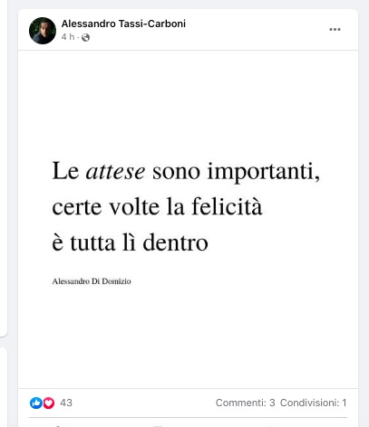 Nel frattempo è lui stesso ad alimentare l’attesa con un post su Facebok, citando Alessandro Di Domizio: “Le attese sono importanti, certe volte la felicità è tutta lì dentro”. PrD