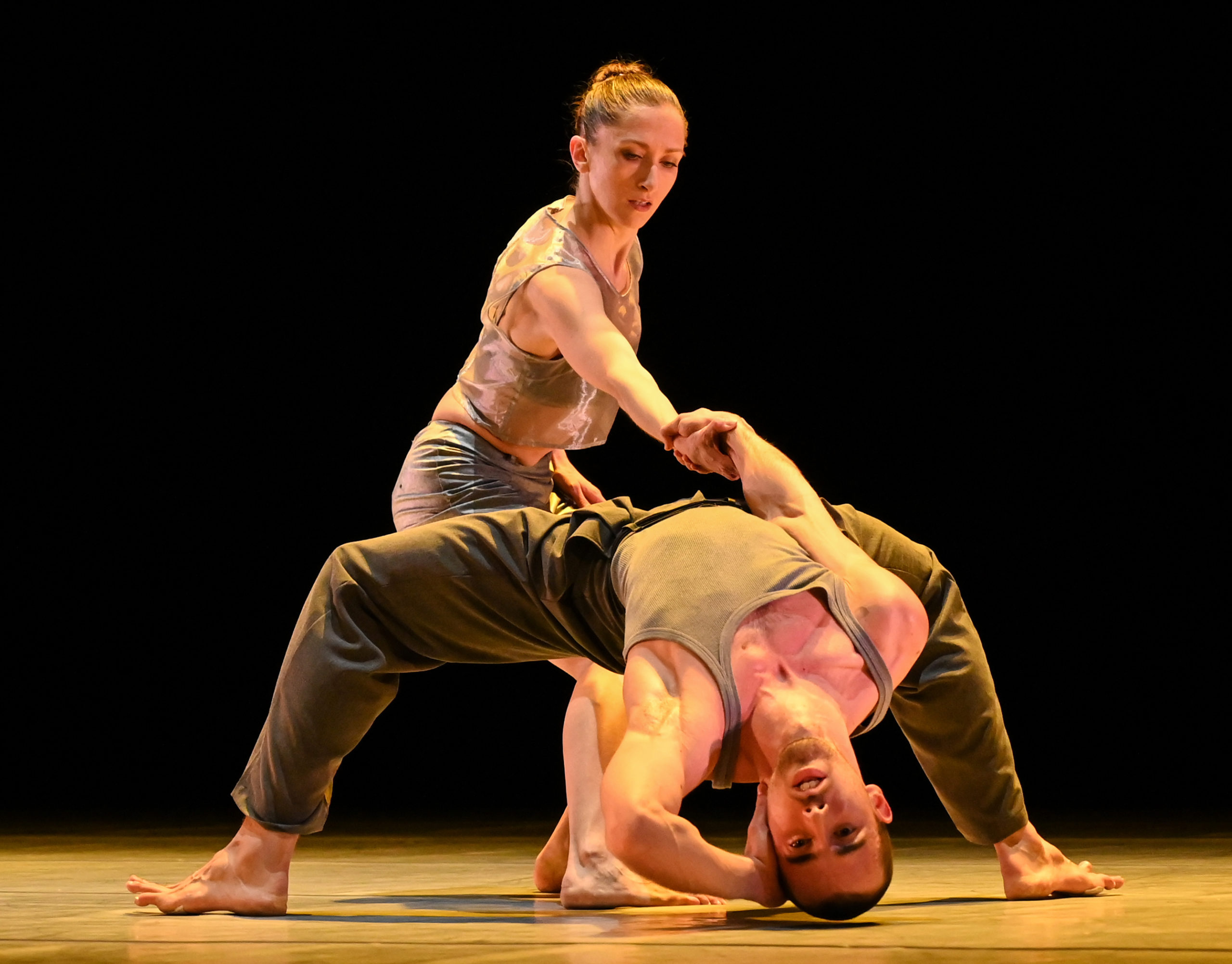 Preludio di Diego Tortelli è una lettera d’amore al corpo per cinque danzatori sulla voce inconfondibile di Nick Cave che non potrà non avvolgere completamente lo spettatore. L’atmosfera cambia con “O” di Philippe Kratz, duetto in cui due corpi-automi obbligano a interrogarsi su come potrebbe mutare il senso del contatto fisico in futuro, sulla musica elettronica di Mark Pritchard e The Field. Anche Another story di Tortelli, accompagnato da brani rock del gruppo Spiritualized, è un duetto sviluppato intorno alla ricerca di un gesto che ci è stato negato durante tutta la pandemia, l’abbraccio. Sulle sonorità di Barrio Sur e Fela Kuti chiude il sestetto Alpha Grace, una riflessione di Philippe Kratz sull’empatia, una forma di comunicazione gentile tra persone che si sentono sullo stesso piano.
