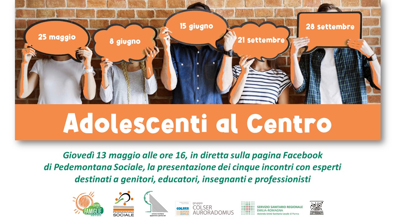 Per confrontarsi sulle difficoltà e acquisire quegli strumenti utili per risolvere disagi e conflittualità, il Centro per le Famiglie distrettuale gestito da Pedemontana Sociale, in collaborazione con l’Unione Montana Appennino Parma -Est, l’Ausl e le cooperative Auroradomus e Connessioni, ha organizzato “Adolescenti al Centro”, un ciclo di cinque incontri tematici con esperti (psicologi, psichiatri, psicoterapeuti ed educatori specializzati nel campo “Adolescenza”) che si svolgeranno dal 25 maggio al 28 settembre 2021, e che verranno presentati giovedì 13 maggio alle ore 16 in diretta sulla pagina Facebook di Pedemontana Sociale (@Pedemontanasocialeparma). Alla presentazione, insieme ai professionisti-relatori degli incontri, interverranno Maristella Galli (Presidente di Azienda Pedemontana Sociale e Sindaca di Collecchio) e Giordano Bricoli (Vicepresidente Unione Montana Appennino Parma Est e Sindaco di Langhirano).