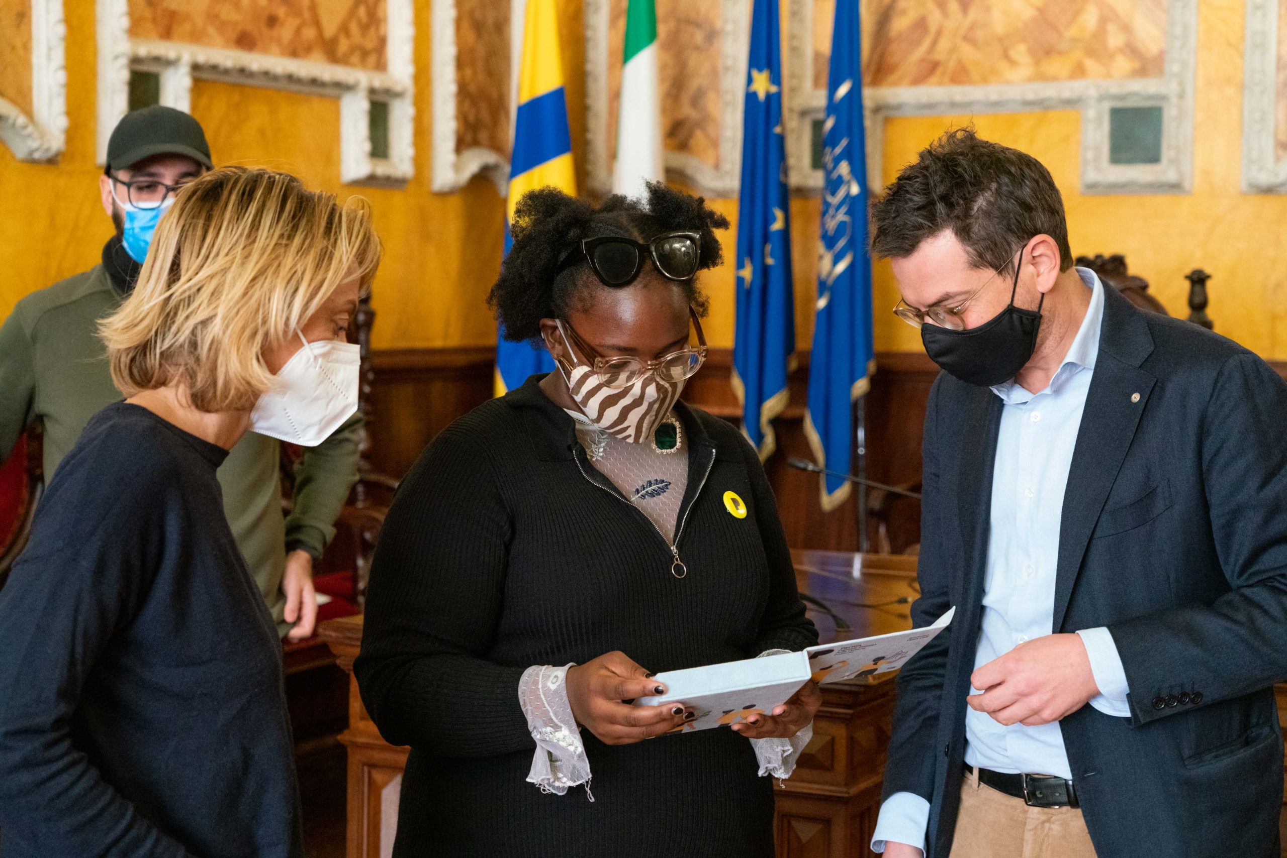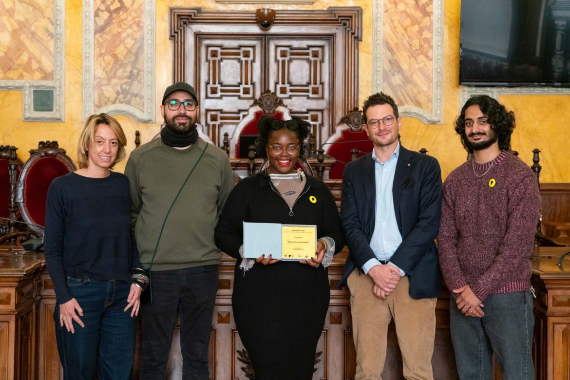 Nell’ambito dell’iniziativa Temporary Signs, bando inserito nel dossier di Parma Capitale Italiana della Cultura 2020+2021, è stato premiato ieri mattina, per il progetto/installazione, “What’s on your mind”, nella sala del consiglio comunale, dall’Assessore alla Cultura, Michele Guerra, il collettivo artistico “state of the [art]”,  di cui fanno parte Munotida Chinyanga, Simone Giustinelli, Adeeb Razak.   La loro installazione è stata realizzata nei giorni scorsi e