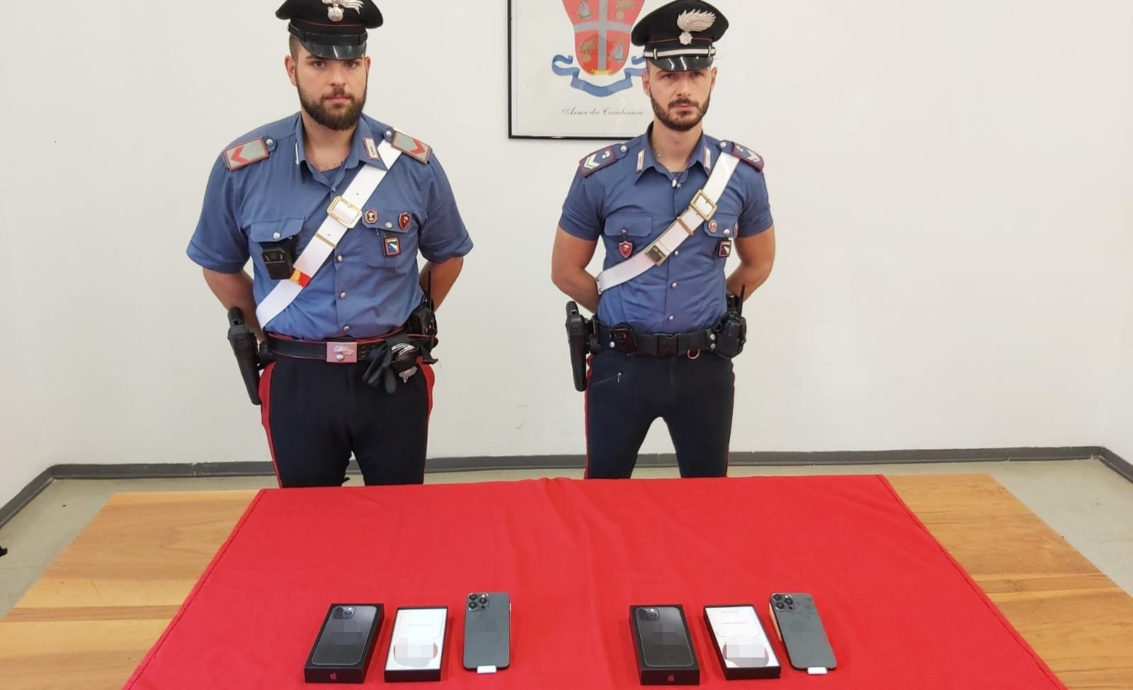 I militari, da un veloce controllo delle confezioni, si sono resi conto che erano riportati lo stesso identico seriale e codice IMEI. Condotti in caserma per effettuare le necessarie verifiche i cellulari sono stati fatti controllare da personale tecnico specializzato del centro di assistenza che ha rilasciato apposita relazione in cui viene certificato che i dispositivi non risultano essere originali ma copie contraffatte. Per i due è scattata la denuncia e i telefoni sono stati sequestrati.