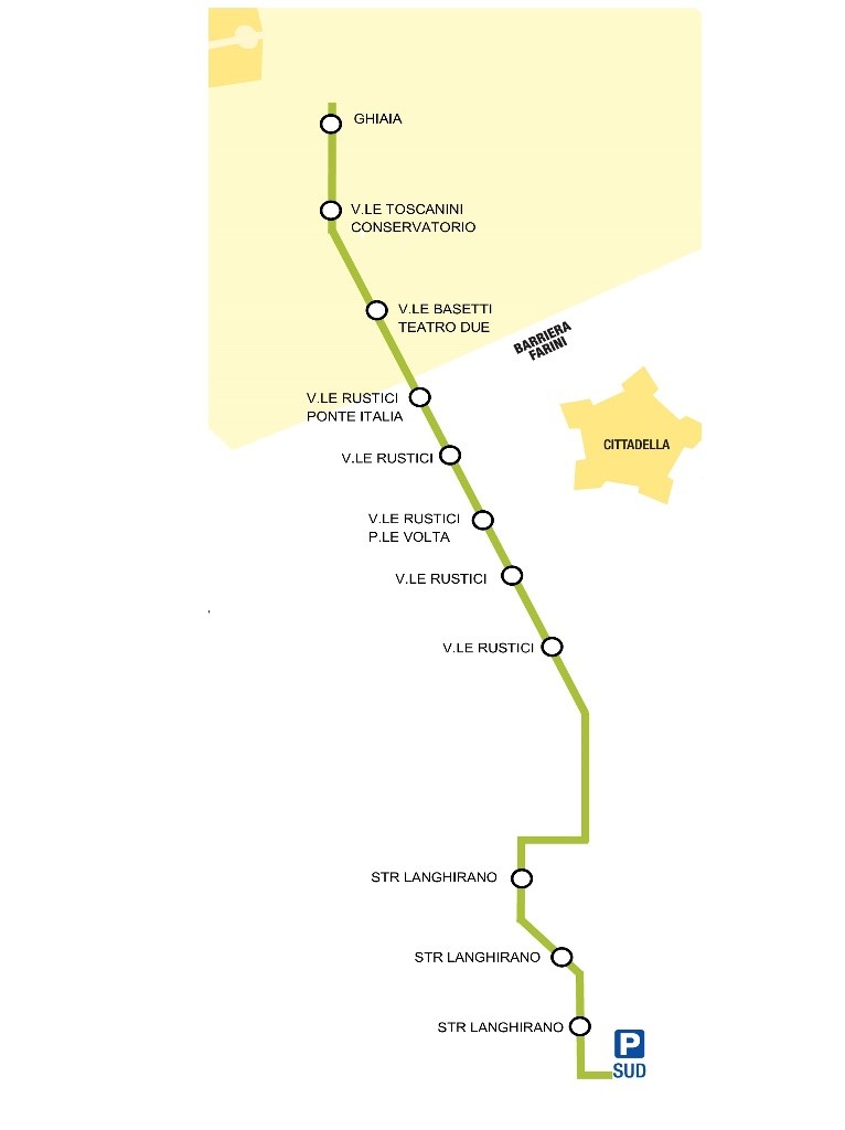 La navetta partirà da V.le Mariotti ai minuti 19’ e 49’ di ogni ora, a partire dalle ore 16,19 e fino alle ore 21,49, e raggiungerà il capolinea del cinema The Space Parma Campus, percorrendo V.le Toscanini, V.le Basetti, V.le Rustici, V.le du Tillot, Strada Langhirano, Via Usberti. Le corse di ritorno verso il centro città partiranno ai minuti 03’ e 33’ di ogni ora, a partire dalle ore 16,33 e fino alle ore 22,03, osservando il medesimo percorso dell’andata.