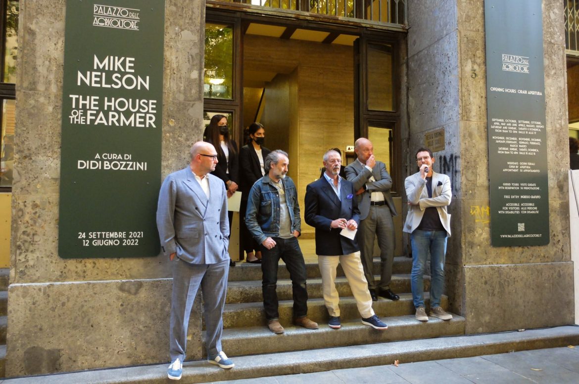 “C’è qualcosa di molto viscerale nello “sgombero” di uno spazio — dichiara Mike Nelson — gli oggetti assumono una particolare urgenza o importanza che fino a quel momento era rimasta sopita. Lo strappo e il prelievo dalla campagna possono essere visti, o sentiti, come un gesto violento in qualche modo in linea con il rapporto dell’edificio con un passato totalitario e un promemoria della disumanizzazione dell’agricoltura da parte della meccanizzazione nel XX secolo e dei mali ambientali che ne sono derivati. Il recupero di questi elementi naturali, ostracizzati a causa della loro ostruzione all’agricoltura, sembra stranamente commovente in un simile edificio. Artisticamente le forme naturali incorniciate contro le linee severe e brutali dell’architettura del palazzo si completeranno, le impiallacciature e i pavimenti in marmo guarderanno e sosterranno i loro parenti indisciplinati: le