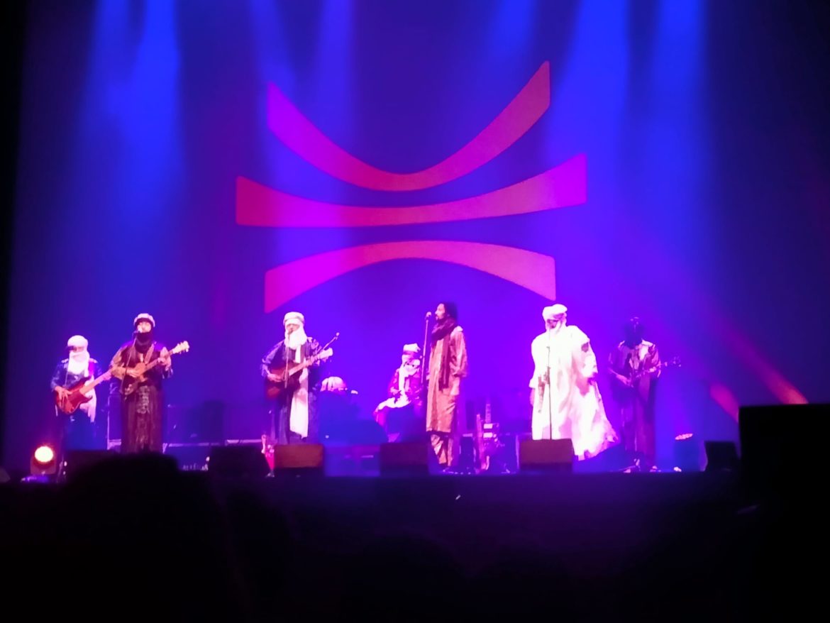 Il pubblico del Teatro Valli di Reggio Emilia, stipato in ogni ordine di posti, riserva una calorosa accoglienza ai Tinariwen, band originaria del Mali, per l’unica data italiana della formazione di musicisti tuareg, nata nei campi libici dove rifugiati di buona parte del continente si addestravano nelle strutture finanziate all’epoca dal colonnello Gheddafi.