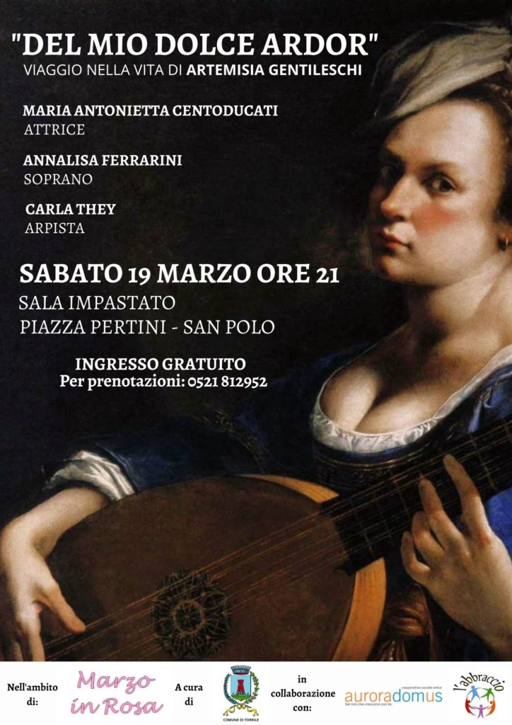 La rassegna “Marzo in Rosa 2022” del Comune di Torrile prosegue sabato 19 marzo alle 21 con lo spettacolo (ad ingresso gratuito) “Del mio dolce ardor”, un viaggio nella vita di Artemisia Gentileschi, la più grande pittrice del ’600, accompagnato da musiche di Gluck, Haendel, Giordani, Caccini, Cesti e Monteverdi.
