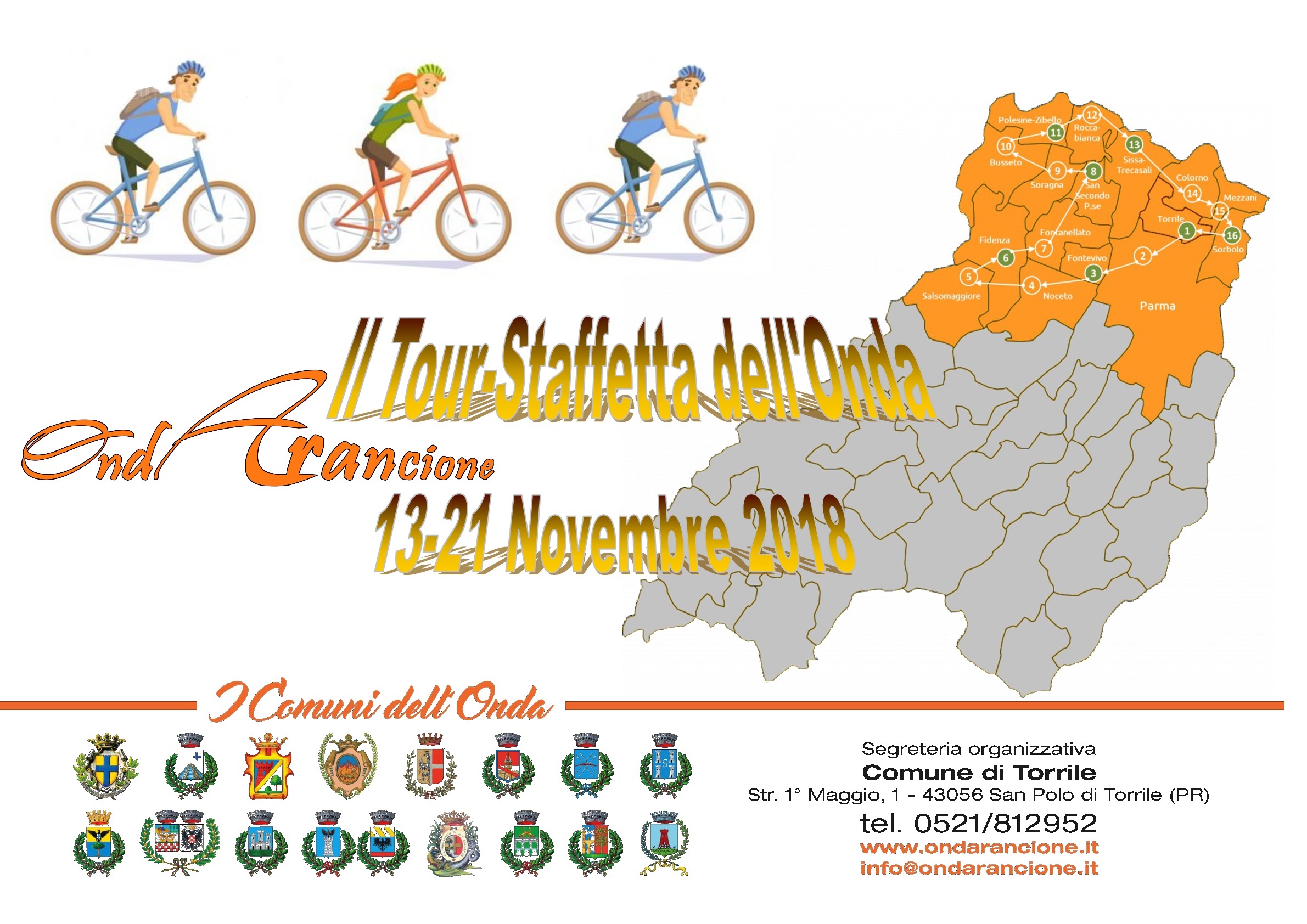 Il TourStaffetta dell’Onda è un itinerario ciclistico che, partendo dal Comune di Torrile martedì 12 novembre, toccherà a tappe i sedici comuni che hanno aderito al Progetto OndArancione.
