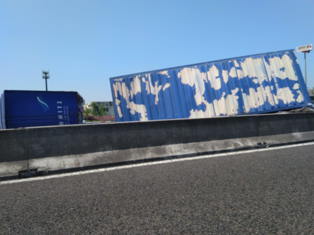 Un camion si è ribaltato occupando l’intera carreggiata, causando la formazione di una lunga colonna di auto.
