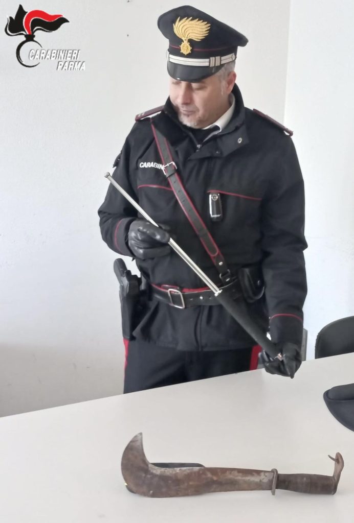 - Un 47enne straniero, residente nel Comune di Neviano Degli Arduini, controllato a bordo della sua auto in una via del centro a Traversetolo, è stato trovato in possesso di una “roncola” della lunghezza di 30 cm. circa. In questo caso, l’attrezzo utilizzato in agricoltura era posto in bella vista sui tappetini posteriori lato guida ed a parere dei militari pronto all’uso. L’uomo che non era un operaio agricolo e non si stava recando a “potare le siepi” non è stato in grado di giustificare in alcun modo il possesso dell’utensile.