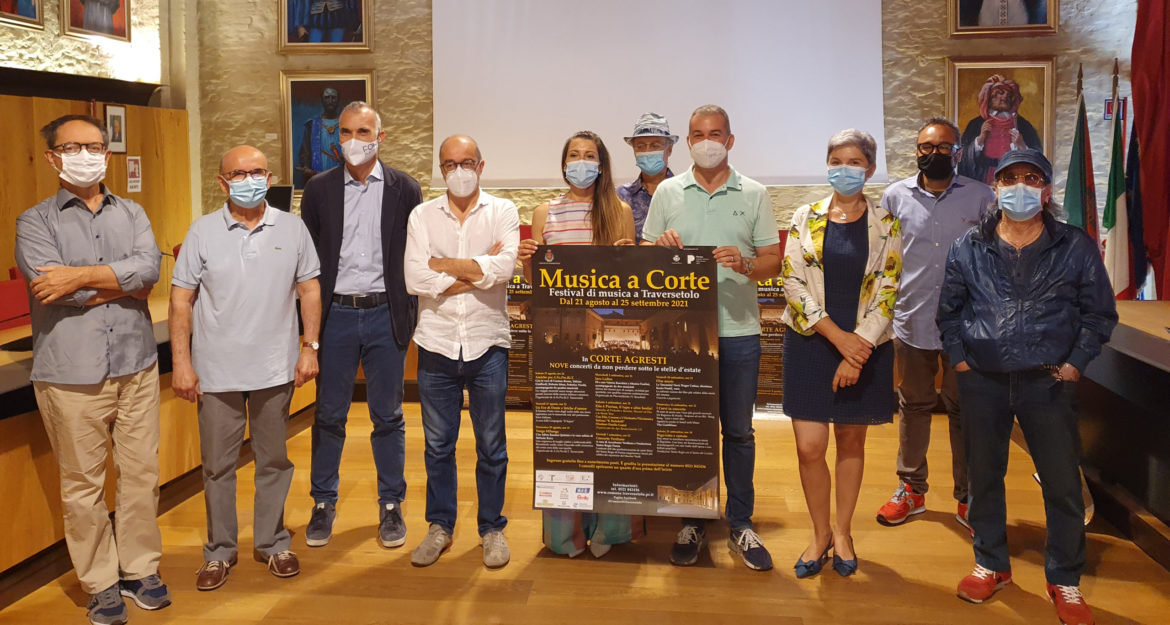 La musica sarà la protagonista dell’estate di Traversetolo. Nella splendida cornice della Corte Agresti si svolgerà infatti dal 21 agosto al 25 settembre 2021 il festival “MUSICA A CORTE”, con nove imperdibili serate da assaporare sotto le stelle. E i concerti accontenteranno un po’ tutti i gusti musicali: ci saranno i grandi successi della musica leggera italiana e straniera, le arie immortali del patrimonio lirico italiano che incontreranno Dante e le sue liriche d’amore, il tango ricordando anche Astor Piazzola a cento anni dalla sua nascita, il jazz con i suoi classici di sempre declinato al femminile, la lirica, le musiche da film, le storiche canzoni de “I Corvi”, il blues. E, in un evento speciale, sul palco della Corte salirà anche Elio con Cesareo e la Filarmonica dell’Opera Italiana “Bruno Bartoletti” nello spettacolo “Elio è Pierino, il lupo e altre bestie!” con musiche di Prokofiev, Rossini, Mozart ed Elio e le Storie Tese. La rassegna è stata presentata questa mattina, venerdì 16 luglio, nella Sala consiglio della Corte Agresti dal sindaco Simone Dall’Orto, dall’assessore alla Cultura Elisabetta Manconi e da alcuni degli artisti protagonisti e degli organizzatori delle serate.