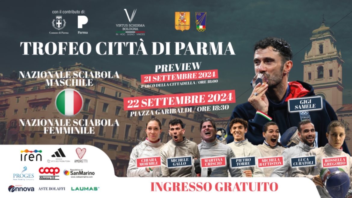 Scherma protagonista a Parma. Domenica 22 settembre alle ore 18.30, la città ducale ospiterà un evento sportivo straordinario: “Trofeo Città di Parma” organizzato dalla Virtus Scherma di Bologna con il patrocinio e contributo del Comune di Parma.