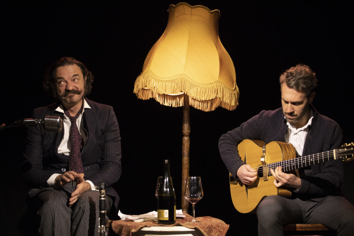 Un salottino anni ‘30, atmosfera soffusa, la gran soirée sta per cominciare: in scena il virtuosismo della chitarra manouche di Corrado Caruana e l’eclettismo di Alessandro Mori al clarinetto (e non solo).