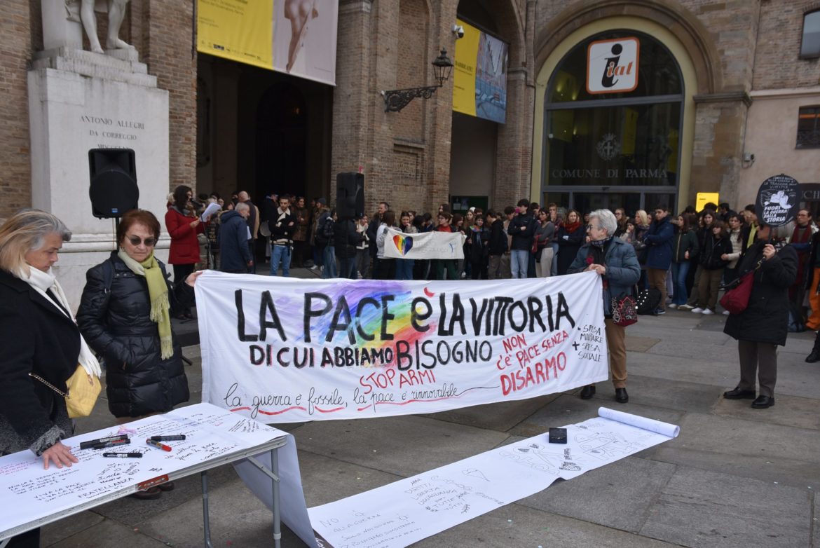 Alla manifestazione hanno aderito: Anpi Parma, Arci Parma, Associazione Giuseppe Malpeli per l’amicizia tra Italia e Birmania, Rete Kurdistan, Missionari Saveriani, Papa Giovanni XXIII, Casa delle donne di Parma, Cgil, Ciac, Cisl Parma e Piacenza, Chiamata contro la guerra, Comunità Betania, Comunità di Sant’Egidio di Parma, Consorzio di solidarietà sociale, Coord. Pace e Solidarietà, Coordinamento per la democrazia costituzionale, Coro dei malfattori, Di mano in mano odv, Donne in nero, Gruppo Missioni aps, Kwa Dunia, Laicato saveriano, Missione oggi, Officina popolare, Ottavo colore, Parma città pubblica aps, Rete carcere, Rete Kurdistan, Rifondazione comunista, Sguardi di fraternità aps, Tuttimondi, Uil.