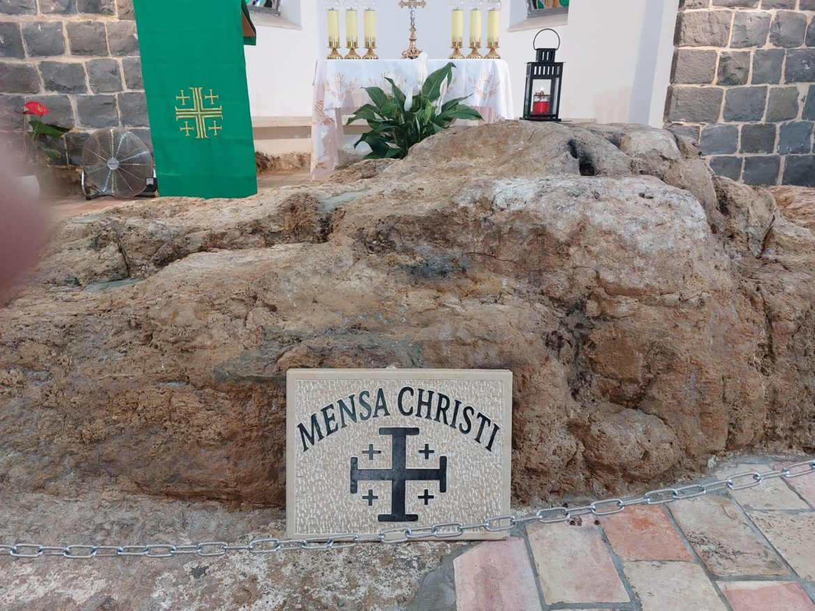 TeoDaily – A qualche centinaio di metri da dove Gesù moltiplicò i pani e i pesci (leggi), a Tagba sul lago di Tiberiade, si trova la chiesa del Primato di Pietro, dove avvennero la seconda pesca miracolosa e dove il Risorto confermò Pietro capo della Chiesa e mangiò insieme ad alcuni apostoli su una pietra venerata come reliquia (“Mensa Christi”). (Giovanni 21,1-14)