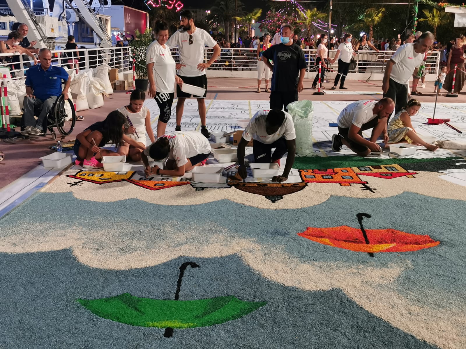 L’artista Barbara Monaco e il suo staff di amici e collaboratori hanno un entusiasmo contagioso, coinvolgono ed interessano tutti i passanti e trasmettono il loro sapere e le loro tecniche a chiunque rivolga loro delle domande o delle curiosità. La loro è una pazienza certosina, ammirevole, che nasce da una passione, ma anche dalla voglia di realizzare qualcosa insieme.All’indomani, tutti i fortunati turisti e non, erano senza parole ed ammiravano, questa particolare forma d’arte popolare, increduli per la maestria adoperata.Il senso di stupore era per un’opera che proprio per il suo essere unica e di breve vita, molti avrebbero preferito che rimanesse per sempre incollata all’asfalto affinché si potesse donare colore e bellezza a cielo aperto.