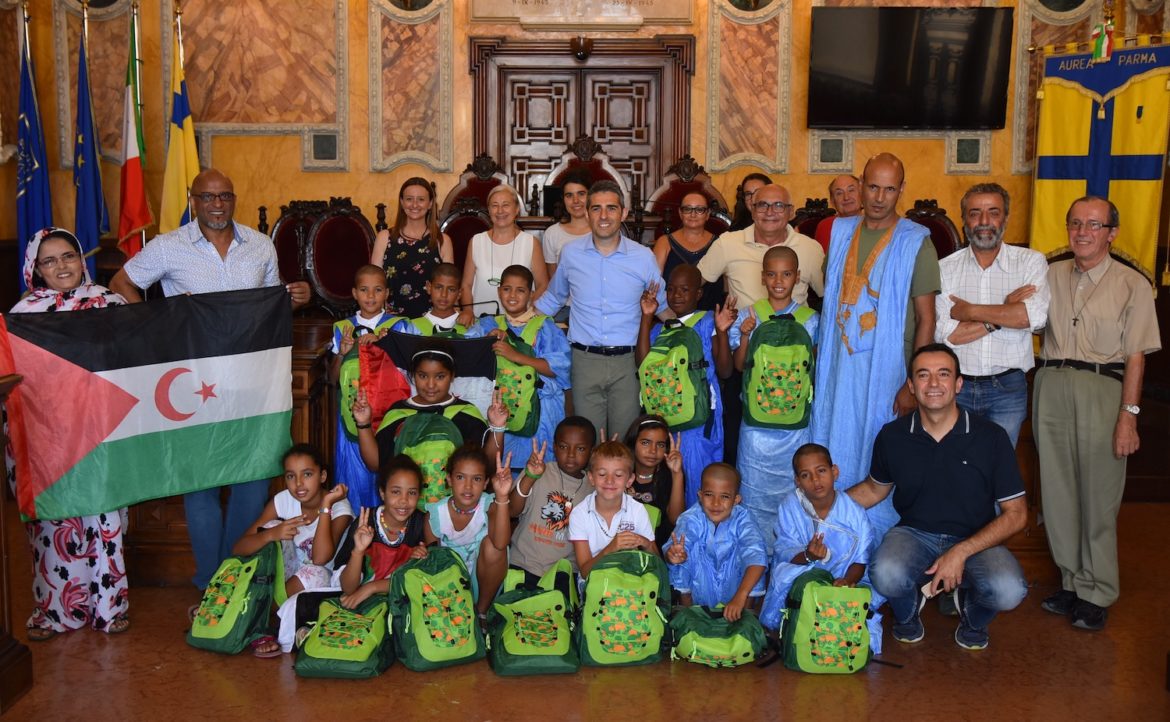 Anche quest’anno i piccoli ambasciatori di pace, i bambini del Saharawi ospitati da Help for Children a Parma, hanno fatto tappa in municipio. Li ha accolti il sindaco, Federico Pizzarotti, che ha espresso la propria solidarietà ai piccoli che vivono esuli nei campi profughi dell’Algeria, a fronte dell’annosa vertenza che vede l’ex colonia spagnola del Sahara Occidentale occupata militarmente dal Marocco. Il Comune di Parma ha, in passato, sottoscritto un accordo di amicizia e collaborazione, durante una missione umanitaria promossa dalla Regione proprio nei campi profughi.