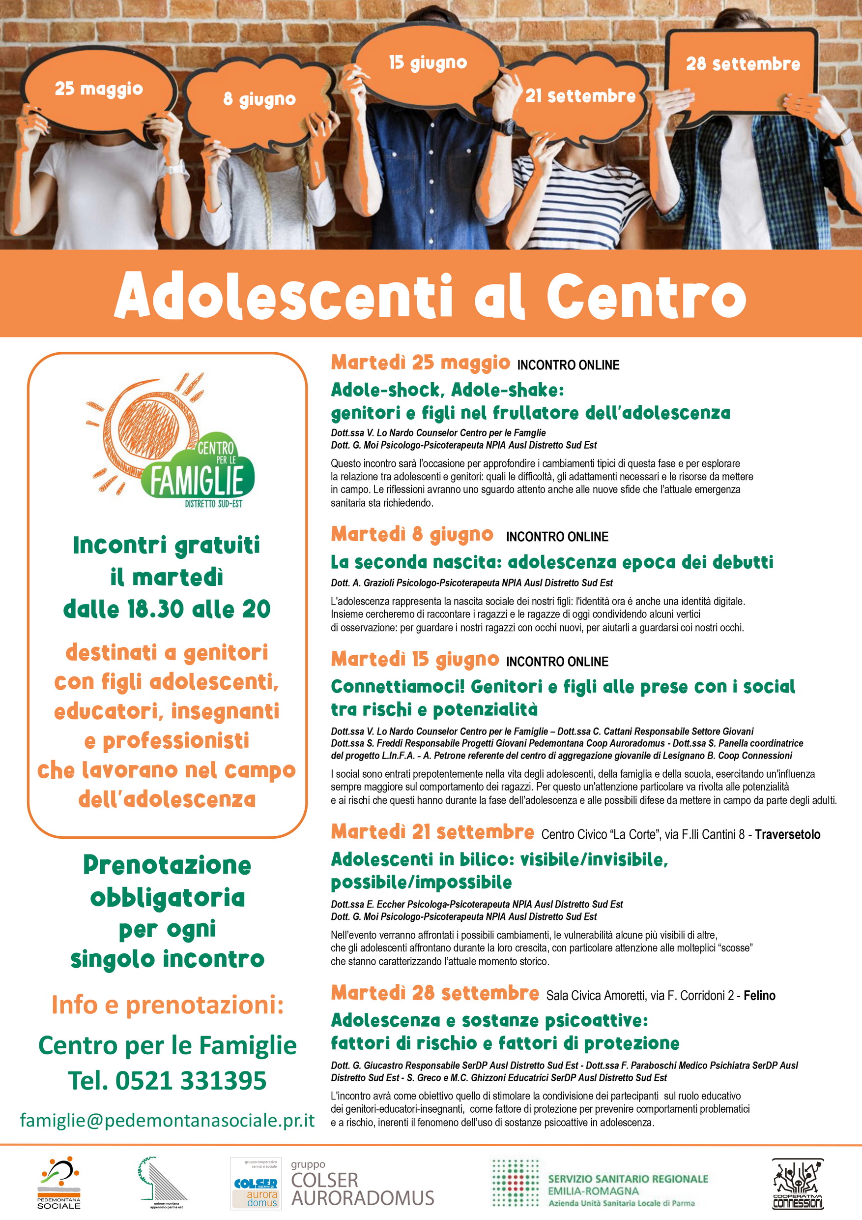 Gli incontri di “Adolescenti al Centro” – rivolti a genitori, agli insegnanti, agli educatori e più in generale al mondo adulto – sono stati pensati e realizzati per arricchire la prospettiva e dare maggiori strumenti per comprendere e supportare meglio i bisogni di ragazzi e ragazze durante  questa importante e delicata fase evolutiva.