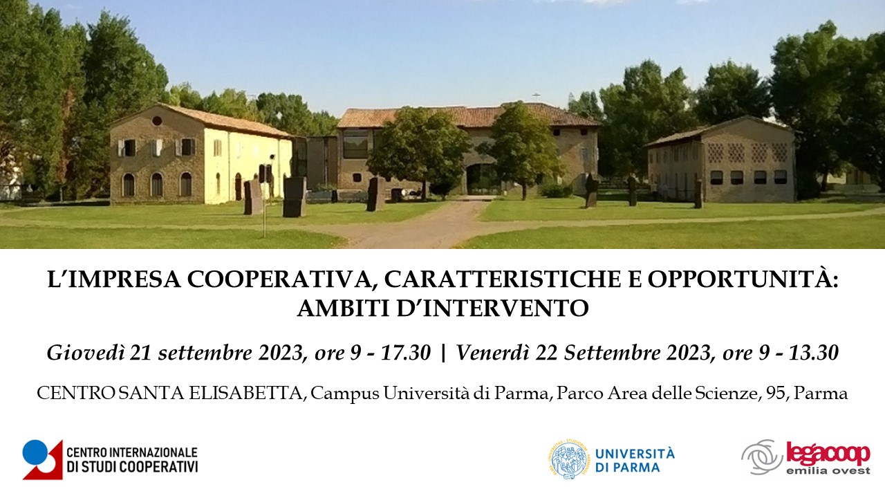 “L’impresa cooperativa, caratteristiche e opportunità: ambiti d’intervento”, in programma il 21 e 22 settembre presso il Centro Santa Elisabetta al Campus dell’Università, è il convegno promosso dal Centro Internazionale di Studi Cooperativi, nato dalla sinergia tra Università di Parma e Legacoop Emilia Ovest, con il sostegno di Coopfond.