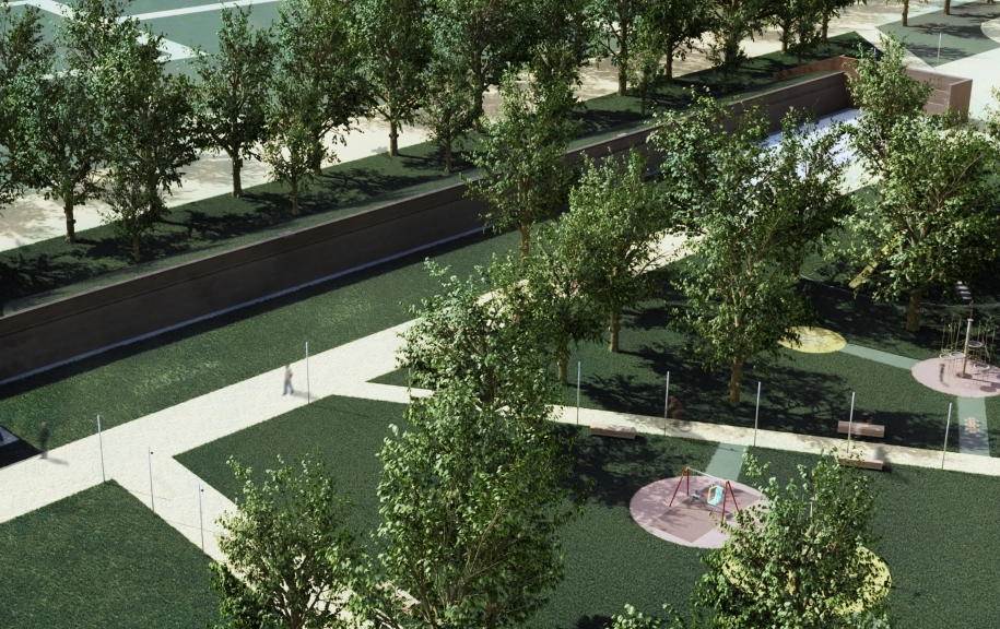 Nuovo parco e area giochi. E in programma il posizionamento di un nuovo filare di aceri campestri in prossimità della recinzione nord, proseguendo fino al teatro delle Briciole e tre nuovi aceri rossi sulla collina in terra. Nella nuova are verde sarà presente, infatti, una piccola collina . Nell’area centrale del nuovo parco, tra i viali alberati, saranno posizionate delle isole adibite a giochi per bimbi, accessibili attraverso dei vialetti, pavimentate con gomma antitrauma, di varie colorazioni e con fondo ammortizzante.