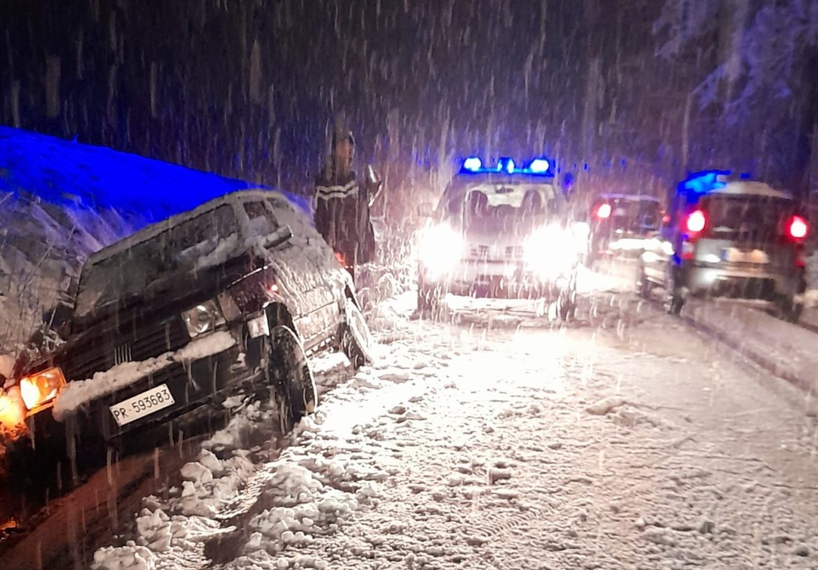 Diversi gli interventi di soccorso da parte dei Carabinieri della Compagnia di Borgo Val di Taro, per le abbondanti precipitazioni nevose che stanno interessando il territorio.