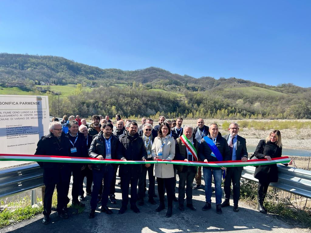 All’inaugurazione, il cui taglio del nastro è avvenuto questa mattina sulla carreggiata dell’infrastruttura, hanno preso parte: Giuseppe Restiani, sindaco del Comune di Varano de’ Melegari; Andrea Massari, presidente della Provincia di Parma; il direttore generale del Consorzio, Fabrizio Useri; l’assessore all’Agricoltura della Regione Emilia-Romagna, Alessio Mammi; e la presidente della Bonifica Parmense, Francesca Mantelli, che ha espresso forte soddisfazione sottolineando: “Il super-lavoro cui è sottoposto il Consorzio, stante la persistente situazione di scarsità idrica, lungo tutti i comprensori della pianura non ci impedisce di proseguire con l’attività nelle zone montane, aree in cui il monitoraggio quotidiano, d’intesa con gli Uffici tecnici delle Amministrazioni comunali locali, ci consente di intervenire più celermente operando in prevenzione. Ringrazio la Regione Emilia-Romagna che, nell’ottica del coordinamento degli enti, non fa mancare il proprio sostegno ai nostri territori appenninici; e il comparto consortile della Montagna per aver diretto e coordinato i lavori”.