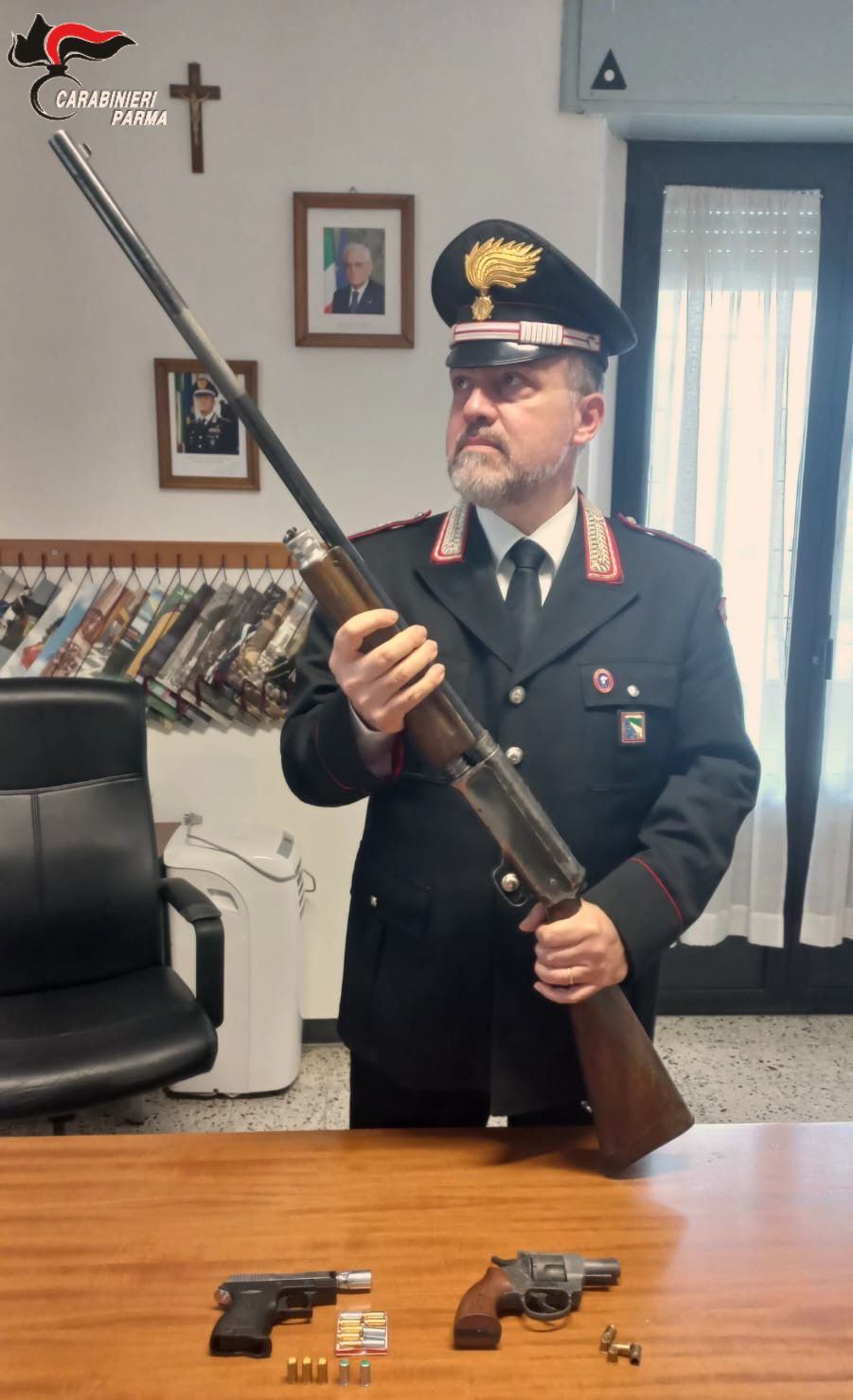 Il 70enne, a conclusione degli accertamenti e verifiche svolte, è stato denunciato in stato di libertà alla Procura della Repubblica di Parma poiché ritenuto il presunto responsabile di ricettazione e detenzione illegale di armi.