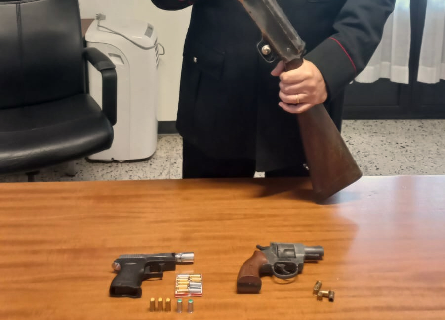 All’interno dell’abitazione, i Carabinieri hanno scoperto e sequestrato armi detenute illegalmente, ovvero senza la prescritta licenza di porto d’armi e senza alcuna autorizzazione di polizia.