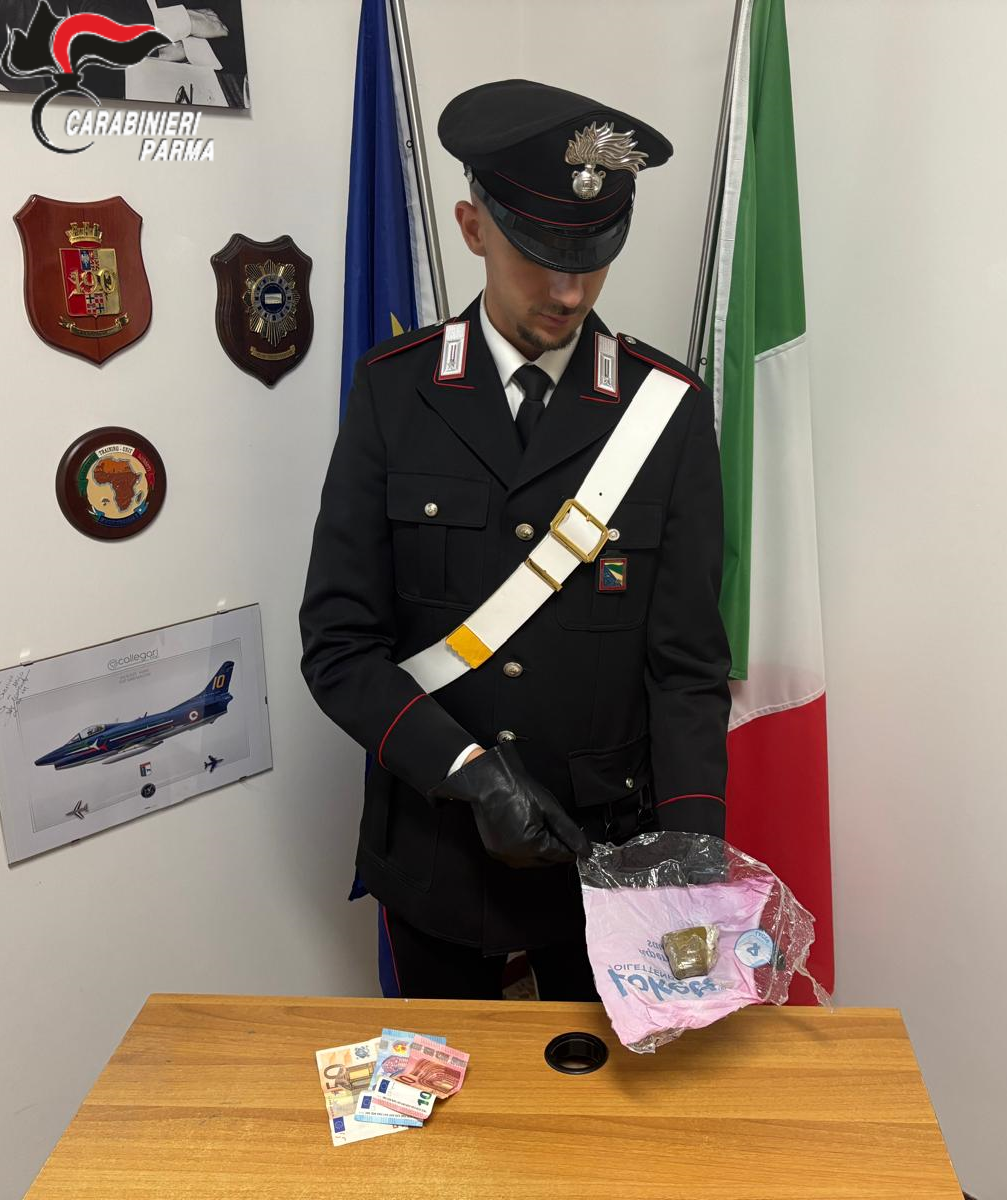 Il giovane fermato è stato dunque accompagnato nella caserma di Fidenza, dove a seguito della perquisizione è stato trovato in possesso della somma di 80,00 euro in contanti, mentre la sostanza stupefacente, dopo essere stata esaminata al Narcotest ed essere effettivamente risultata hashish è stata posta sotto sequestro.