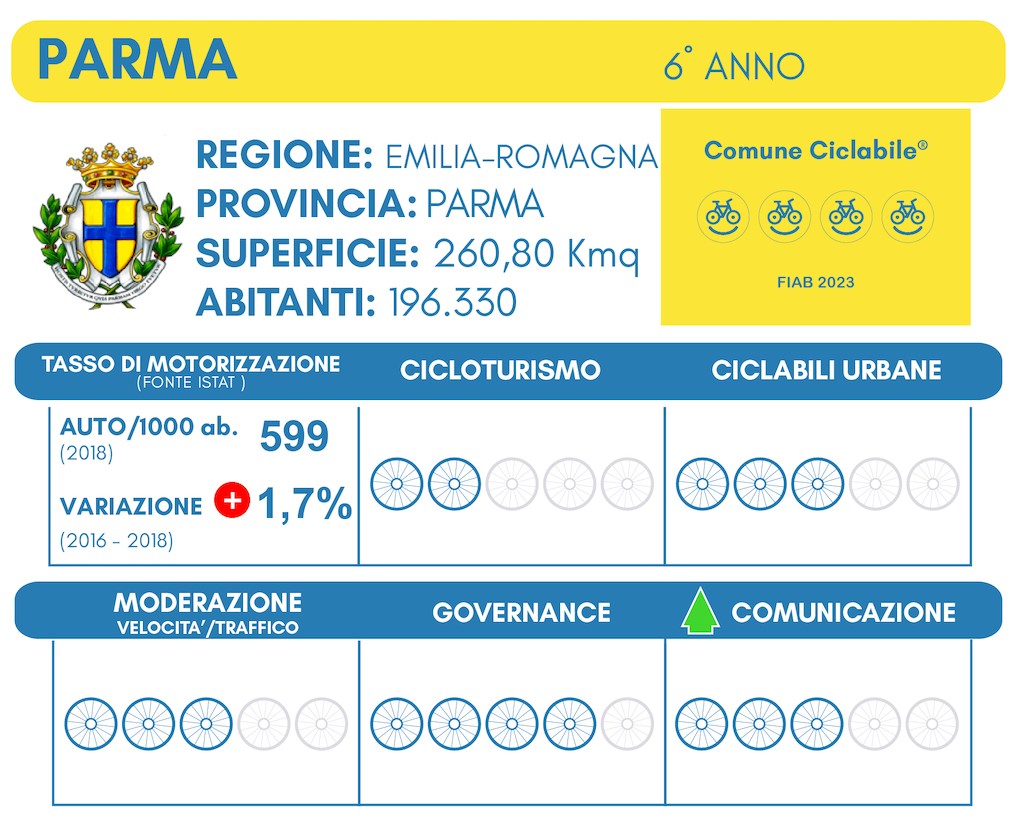 “Parma, è entrata già dalla 1^ edizione, e si conferma ComuneCiclabile da 4 bandiere.” è stato il giudizio sulla città ducale “Positiva l’estensione e connessione della rete, anche attraverso l’utilizzo delle novità normative come le corsie ciclabili. A Parma l’espansione delle zone 30 e ora punterà sulla “Città30”.