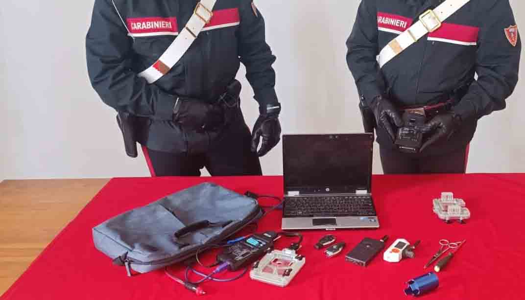 A questo punto davanti agli occhi dei militari si è presentata una scena piuttosto insolita, invece dei consueti grimaldelli per scardinare il blocchetto di accensione, i due avevano poggiato sulle proprie gambe un computer acceso, collegato con dei cavi ad un dispositivo elettronico al cui interno era stato inserito il blocchetto di accensione asportato per intero dal furgone.