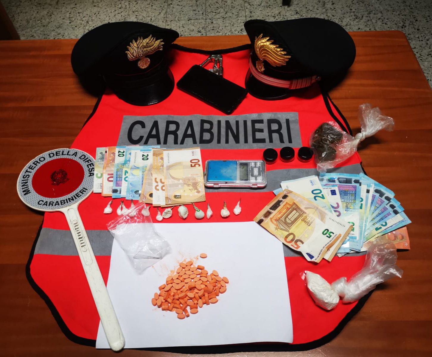 Considerati i precedenti, l’atteggiamento nervoso e la improbabile giustificazione fornita la pattuglia procede ad una perquisizione del mezzo che consente di trovare, nascosto nel vano dove è alloggiata la cassa stereo, un borsello con all’interno: cocaina, ketamina e hashish per un peso di quasi un etto, 100 pastiglie di ecstasy/MDMA, la somma di 800 euro ed un bilancino di precisione. Condotto in caserma è stato tratto in arresto per detenzione ai fini di spaccio e posto agli arresti domiciliari a disposizione dell’Autorità Giudiziaria.