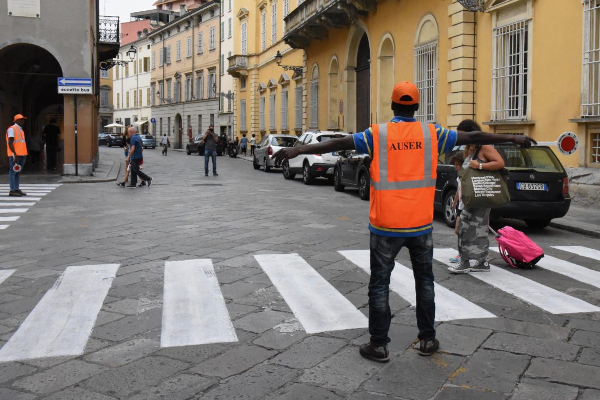 Richiedenti protezione internazionale impegnati in attività di vigilanza scolastica, accanto ai volontari Auser, grazie anche al coinvolgimento delle associazioni Svoltare Onlus e e Gruppo Umana Solidarietà, in sinergia con il Comune di Parma. Al momento sono attivi 9 richiedenti protezione internazionale e 3 sono le riserve che collaborano nella gestione del traffico che gravita attorno a sette scuole della città. Il servizio ha preso avvio con l’inizio dell’anno scolastico, grazie ad un progetto attivo da aprile che vede coinvolto anche il Corpo Unico della Polizia Municipale.