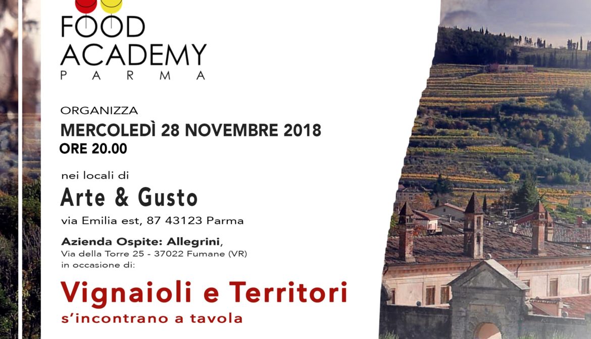 Mercoledì 28 novembre alle ore 20:00 nei locali di Arte e Gusto si terrà il secondo appuntamento della stagione 2018 – 2019 della rassegna “Vignaioli e territori s’incontrano a tavola” una serie di cene didattiche, dedicate ad alcune regioni italiane con abbinamenti ai vini dei territori di provenienza. Durante queste serate saranno presenti i produttori che forniranno notizie, temi di discussione e approfondimenti legati all’esperienza sul campo.