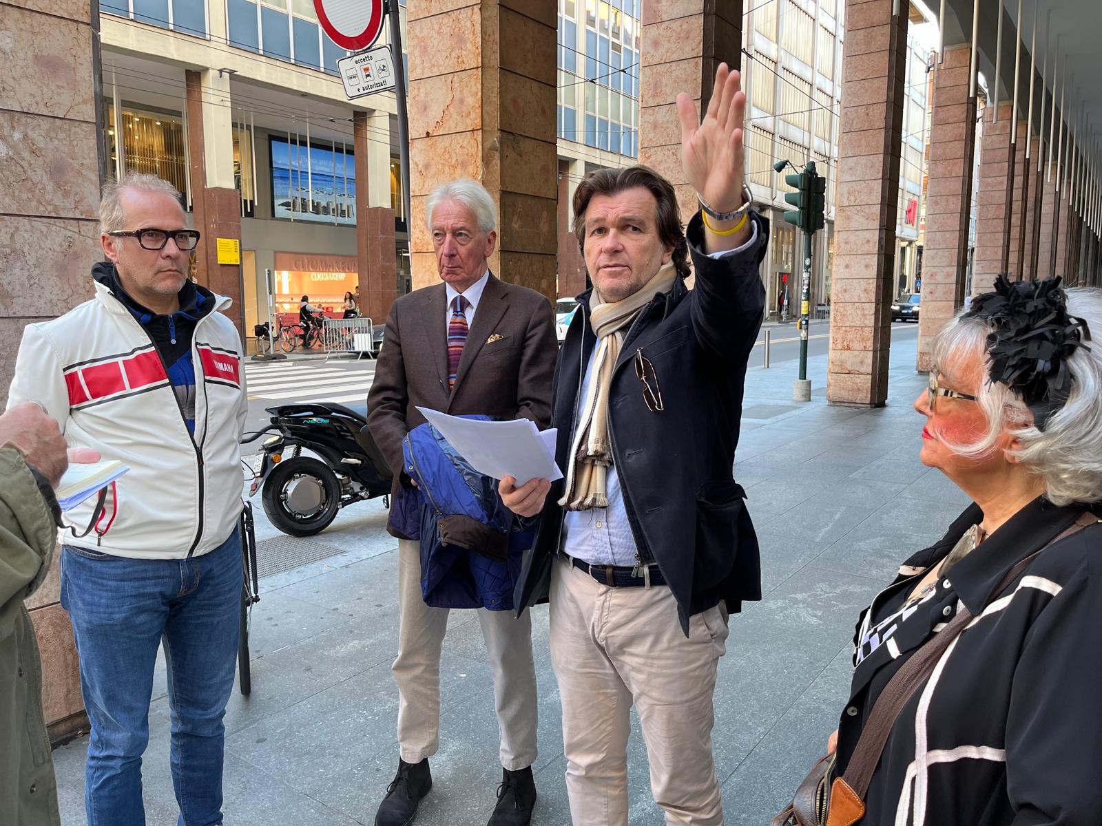 Ieri Pietro Vignali insieme a Ludovico Pollono (Presidente associazione ViviParma, Filippo Guarnieri (direttivo ASCOM e titolare negozio abbigliamento Schick Men) e Antonia Galliano (titolare storico negozio abbigliamento Charlot) hanno tenuto in via Mazzini una conferenza stampa in merito alla crisi del commercio in centro.