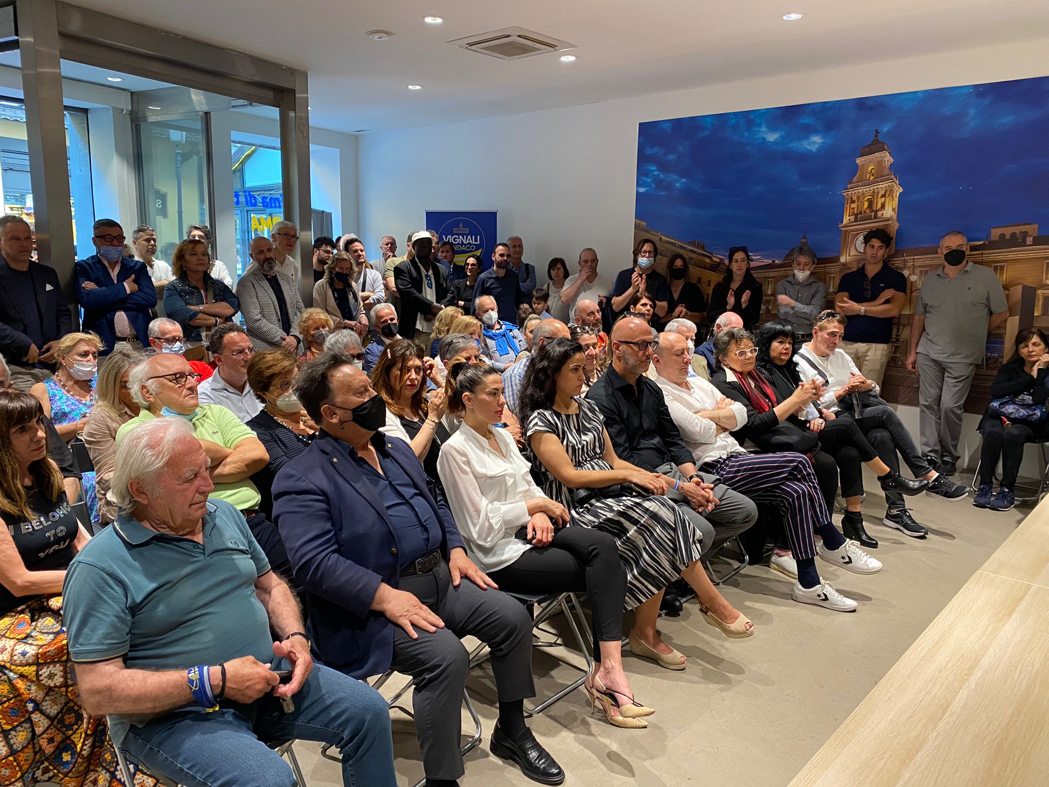 “In questi mesi – ha detto Vignali nel suo intervento – ho girato tanto i quartieri della nostra città e incontrato centinaia di persone che mi hanno raccontato le loro preoccupazioni e la loro voglia di riscatto. Non avrei mai accettato di impegnarmi in prima persona in queste elezioni se non avessi visto che il nostro civismo è un’idea viva, patrimonio della nostra gente. La nostra è una proposta e una candidatura autenticamente civica, cosa che non possono dire altri che avevano la tessera di partito in tasca fino a pochi anni fa. Il civismo non si improvvisa quando arrivano le elezioni: è una storia, la nostra storia di uomini e donne che mettono Parma prima di tutto: prima dei calcoli della politica, degli accordi di potere, degli interessi personali, di parte e di partito.
