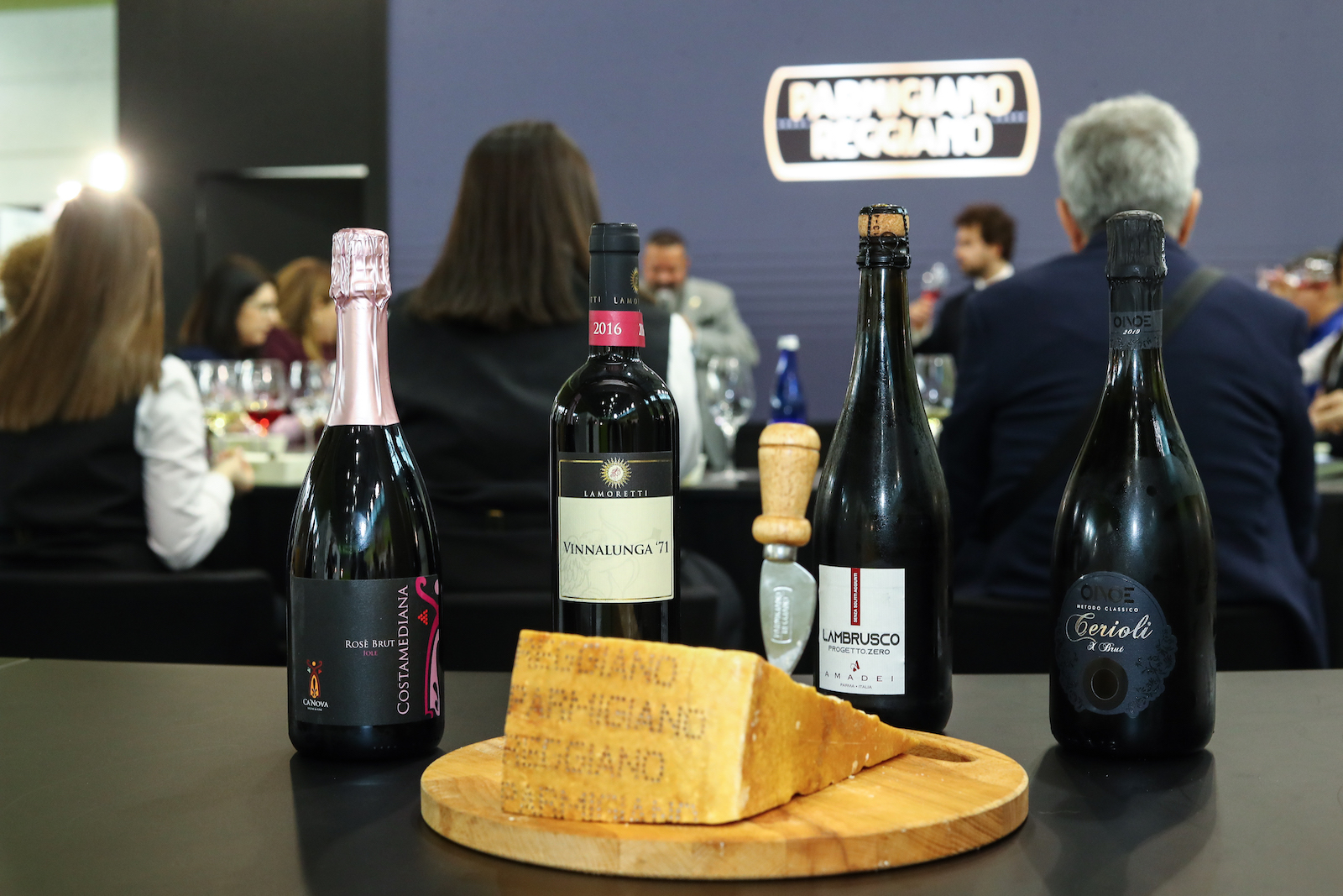 Lo Spumante Metodo Classico Cerioli dell’Azienda Oinoe ha incontrato il Parmigiano Reggiano di 24 mesi, mentre una stagionatura di ben 70 mesi ha trovato l’abbinamento ideale nello Spumante Rosé Brut Iole dell’azienda Cà Nova. Il Lambrusco dell’Emilia IGT Progetto.Zero di Amadei Vini ha valorizzato il Parmigiano di 36 mesi e il Rosso fermo Vinnalunga ‘71 dell’Azienda Lamoretti ha completato l’esperienza con una stagionatura di Parmigiano Reggiano di 50 mesi.