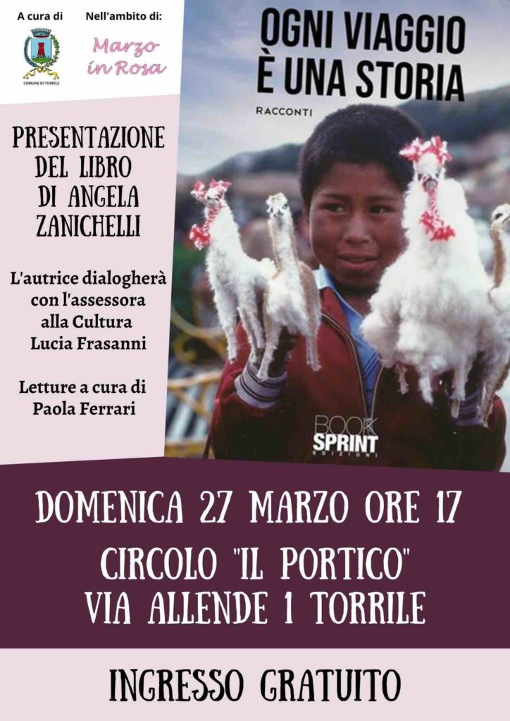 Domenica 27 marzo alle 17 al circolo Il Portico sarà presentato il libro “Ogni viaggio è una storia” di Angela Zanichelli, ex sindaca ed ex assessora a Sorbolo; fondatrice e presidente dell’associazione Women for women. Zanichelli dialogherà con l’assessora alla Cultura Lucia Frasanni con letture a cura di Paola Ferrari. Ingresso gratuito.