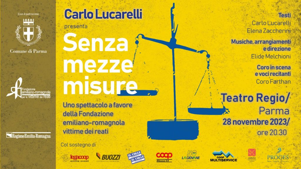 E “Senza mezze misure” è anche il titolo della seconda edizione dello spettacolo che quest’anno, dopo Modena, andrà in scena al Teatro Regio di Parma il prossimo 28 novembre, si potranno acquistare i biglietti online (https://www.teatroregioparma.it/). Il ricavato sarà interamente destinato al fondo vittime della Fondazione.