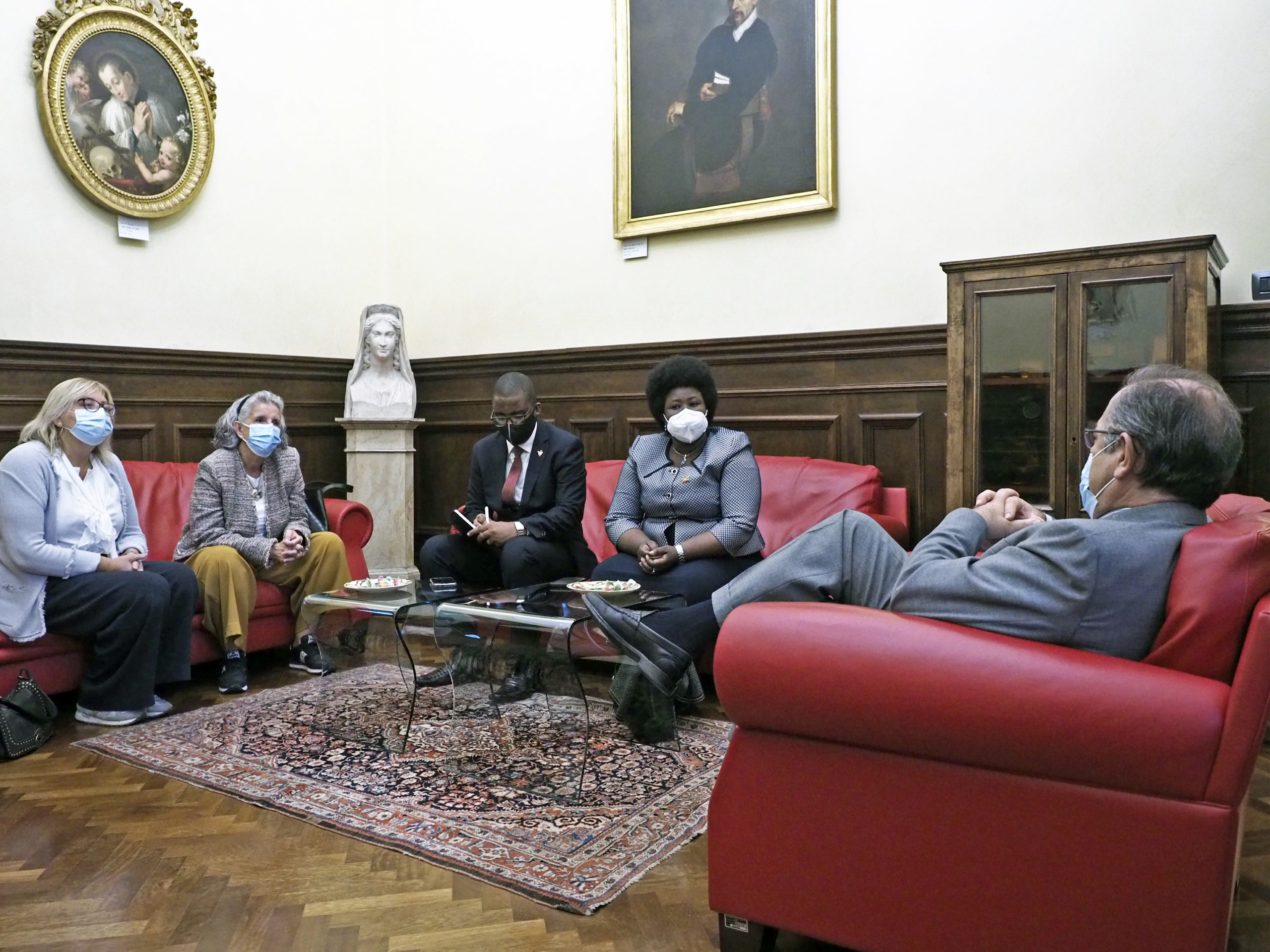 Visita istituzionale all’Università di Parma per l’Ambasciatrice della Repubblica del Burundi a Roma, Espérance Ndayizeye. L’Ambasciatrice, accompagnata dal Primo consigliere d’Ambasciata e dall’Assessora alla Cooperazione internazionale del Comune di Parma Nicoletta Paci, è stata accolta dal Rettore Paolo Andrei. Nel corso dell’incontro si è parlato in particolare dell’avvio di una possibile cooperazione tra l’Università del Burundi e quella di Parma.