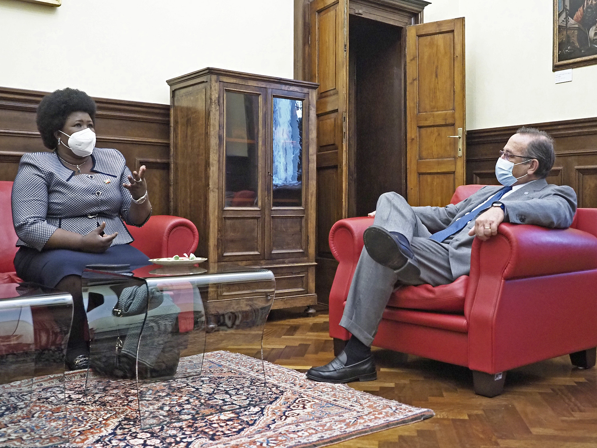 Visita istituzionale all’Università di Parma per l’Ambasciatrice della Repubblica del Burundi a Roma, Espérance Ndayizeye. L’Ambasciatrice, accompagnata dal Primo consigliere d’Ambasciata e dall’Assessora alla Cooperazione internazionale del Comune di Parma Nicoletta Paci, è stata accolta dal Rettore Paolo Andrei. Nel corso dell’incontro si è parlato in particolare dell’avvio di una possibile cooperazione tra l’Università del Burundi e quella di Parma.