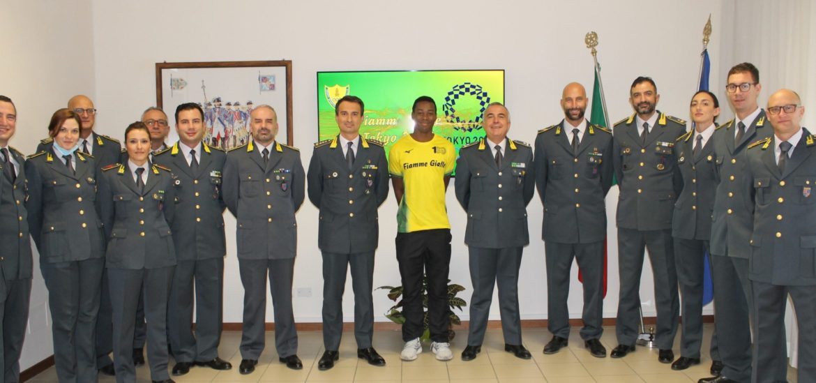 Giornata particolare per l’atleta del Gruppo Sportivo delle Fiamme Gialle, Eseosa Fostine Desalu, detto “Fausto”, laureatosi campione olimpico a Tokio il 6 agosto scorso nella staffetta 4×100 metri correndo la terza frazione e stabilendo inoltre, insieme a Lorenzo Patta, Marcell Jacobs e Filippo Tortu, il nuovo record italiano con il tempo di 37”50.
