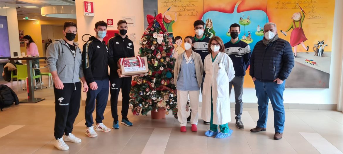 Una delegazione del Parma baseball – composta dal presidente Luca Meli, dagli atleti Alberto Mineo, Giulio Monello e Sebastiano Poma e dai rappresentanti dell’ufficio comunicazione Cristian Ferrari e Tommaso Benatti – ha fatto vista questa mattina al reparto di Oncologia Pediatrica dell’Ospedale dei bambini di Parma portando alcuni regali ai giovani pazienti.