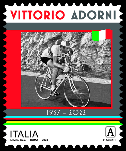 Si è svolta questa mattina nella sala del Consiglio Comunale la cerimonia di presentazione del francobollo dedicato al Campione del Mondo di Ciclismo parmigiano Vittorio Adorni, fa parte di una serie di quattro francobolli dedicati al ciclismo ed ai ciclisti italiani campioni del mondo.