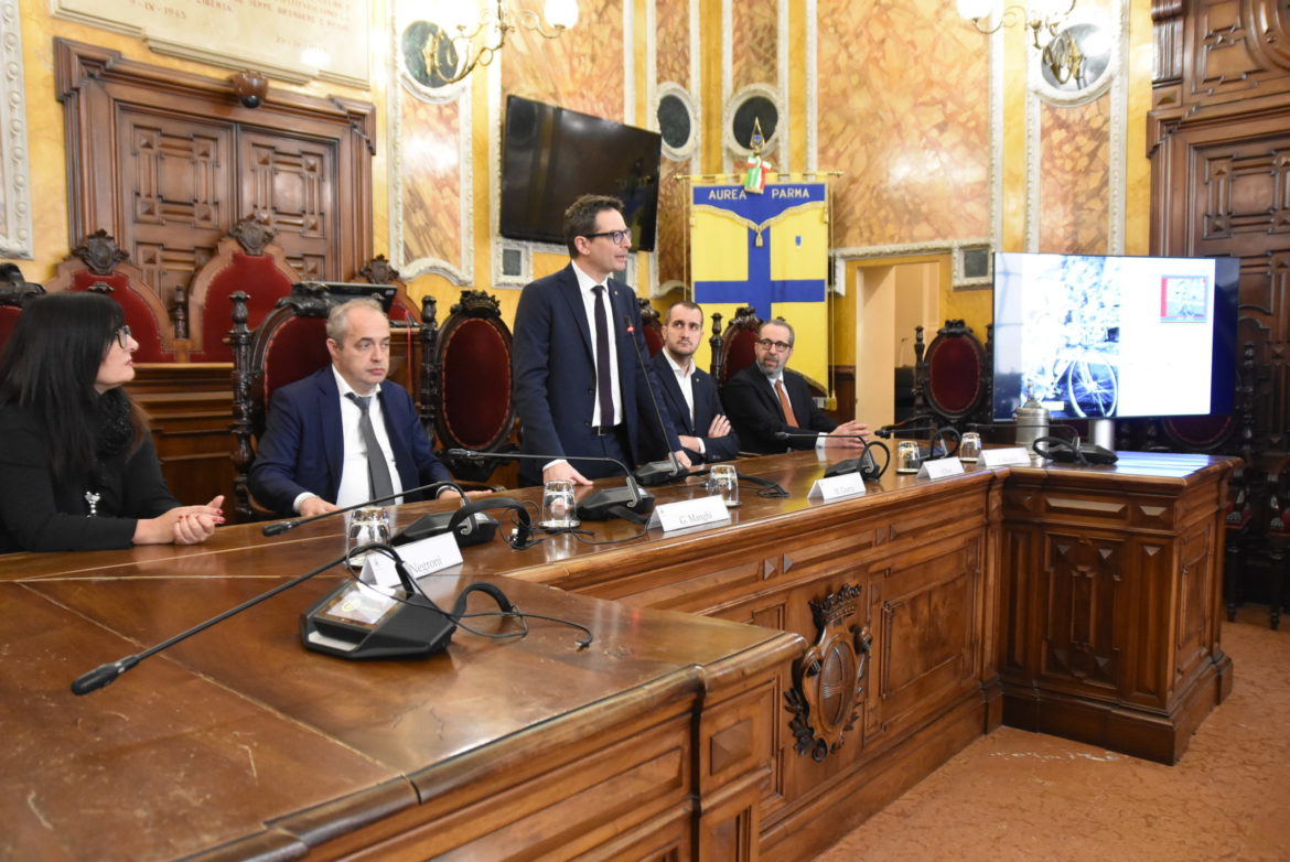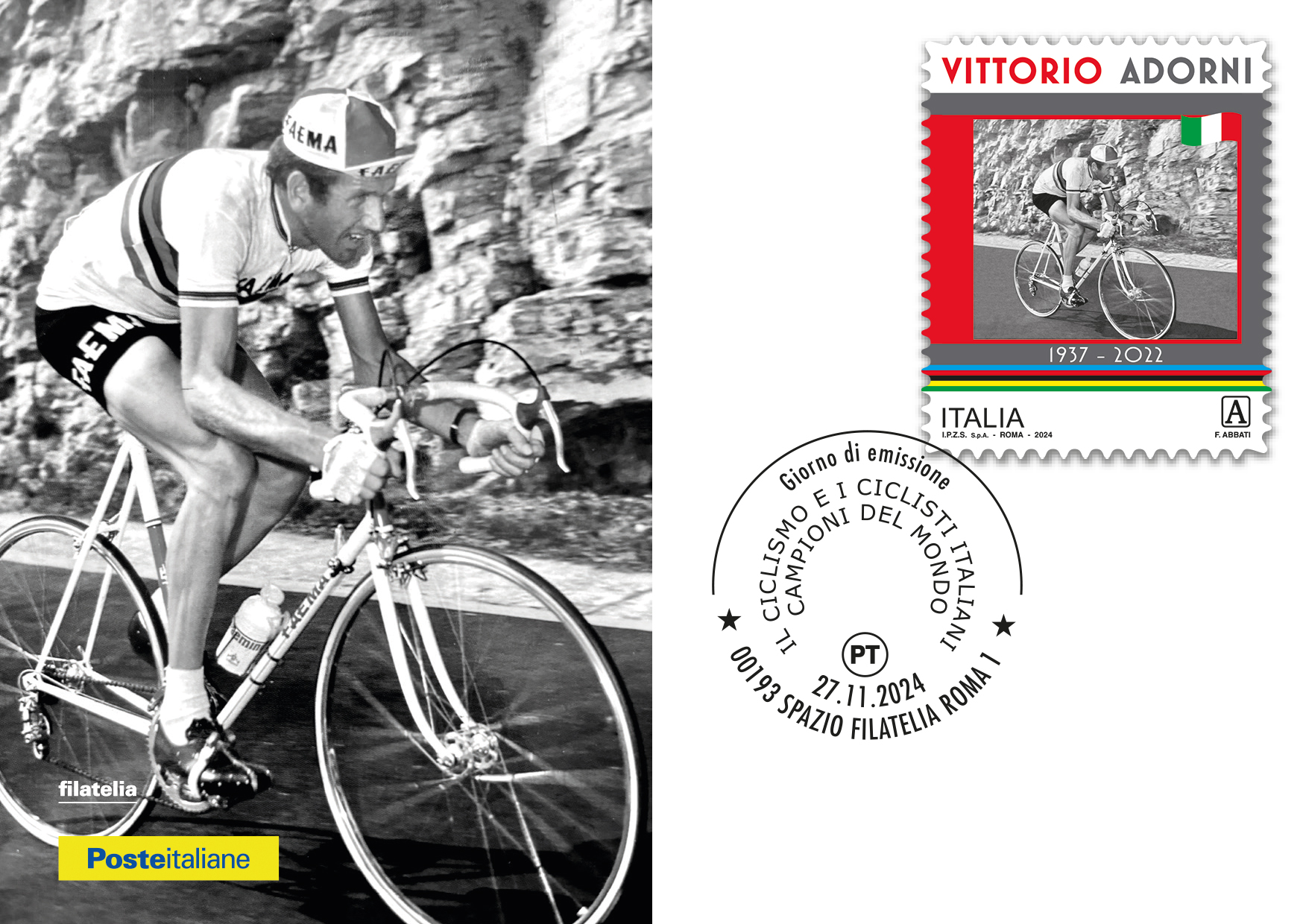 Si è svolta questa mattina nella sala del Consiglio Comunale la cerimonia di presentazione del francobollo dedicato al Campione del Mondo di Ciclismo parmigiano Vittorio Adorni, fa parte di una serie di quattro francobolli dedicati al ciclismo ed ai ciclisti italiani campioni del mondo.